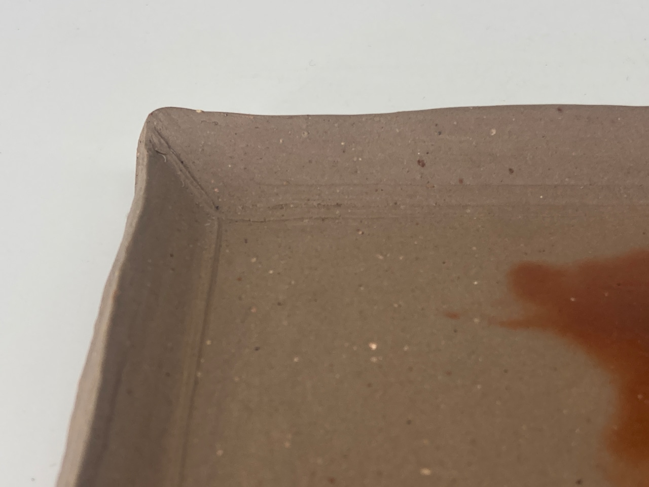 5寸(約15㎝)の角皿です。ヒダスキの焼け色です。